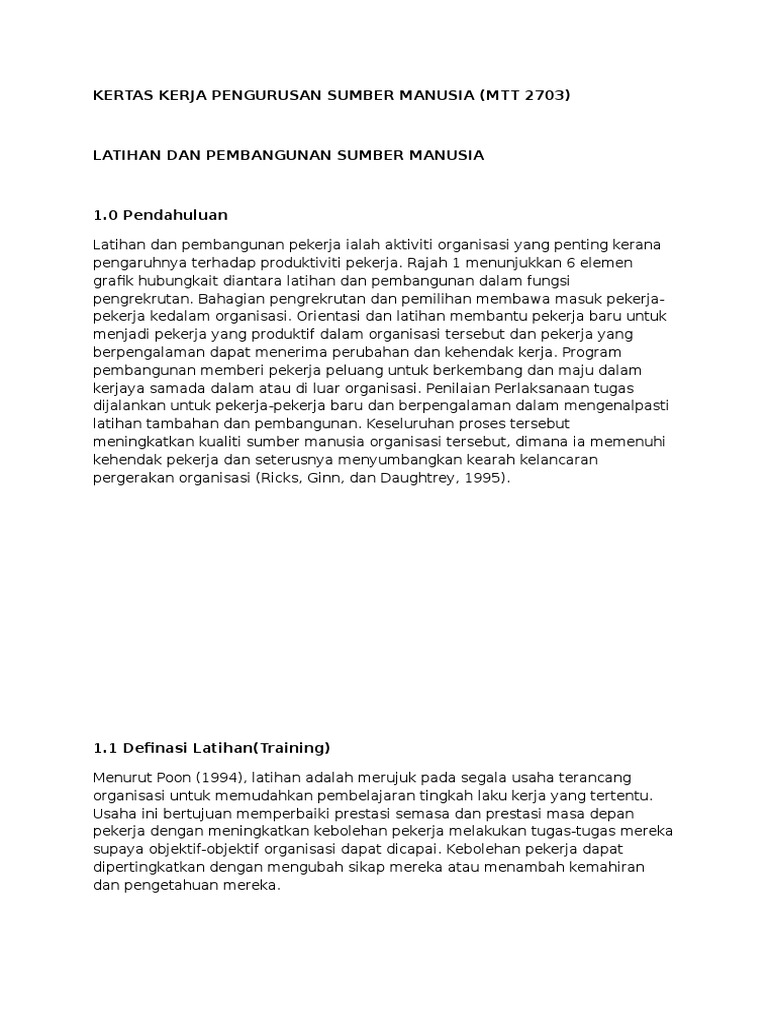 Doc Latihan Dan Pembangunan Sumber Manusia Siti Hajanah Hashim Academia Edu
